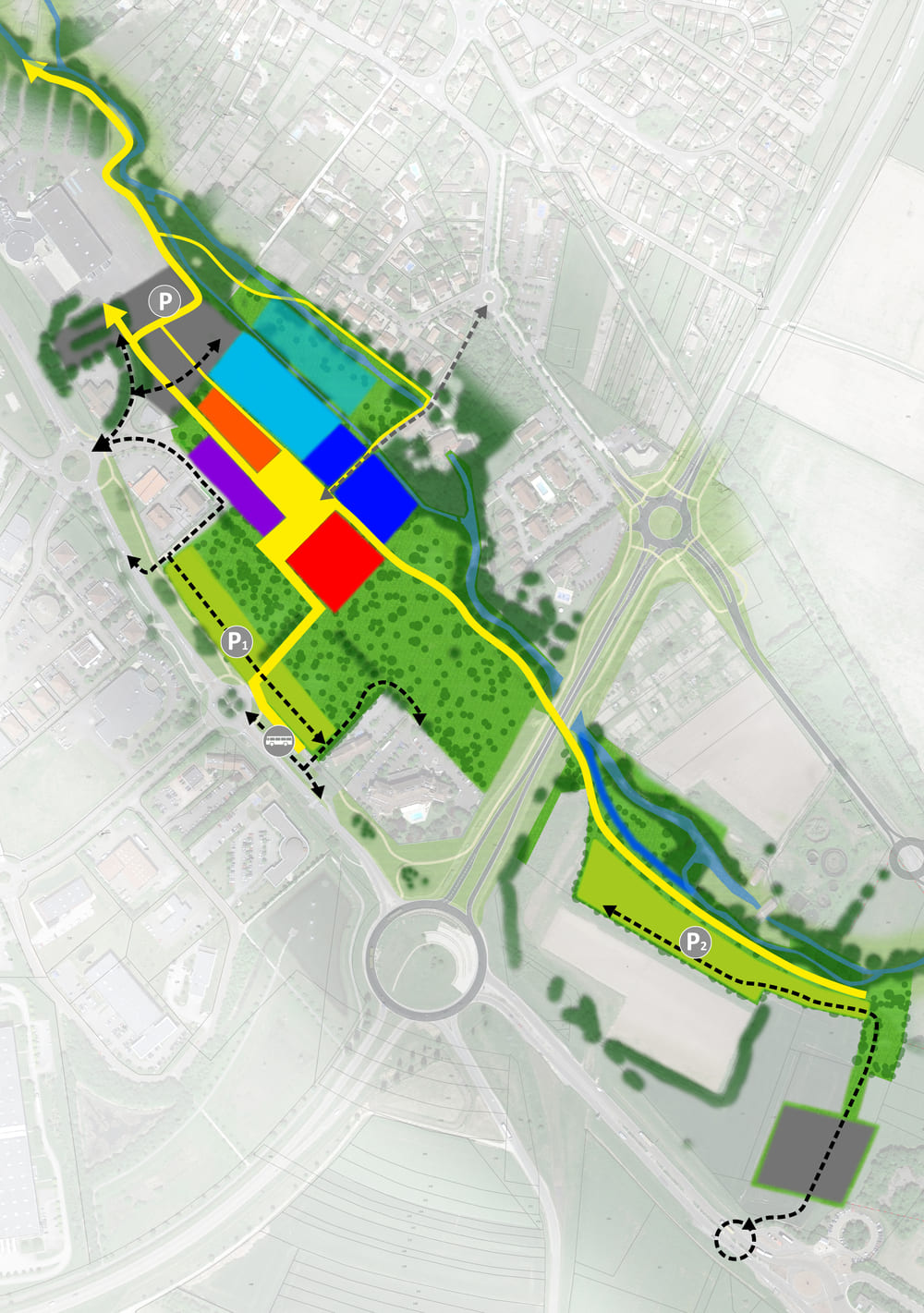 Ce projet a été travaillé dès la programmation urbaine, afin de définir les principes d’aménagement et de composition du site. Nous avons également assuré la faisabilité réglementaire en réalisant étude d’impact, étude patrimoniale, permis d’aménager, …