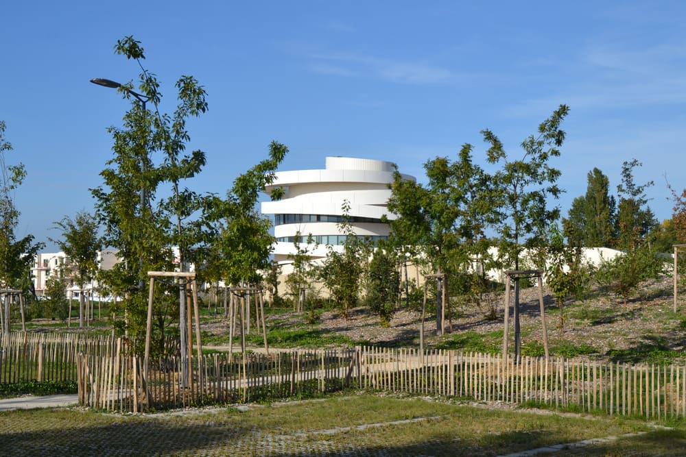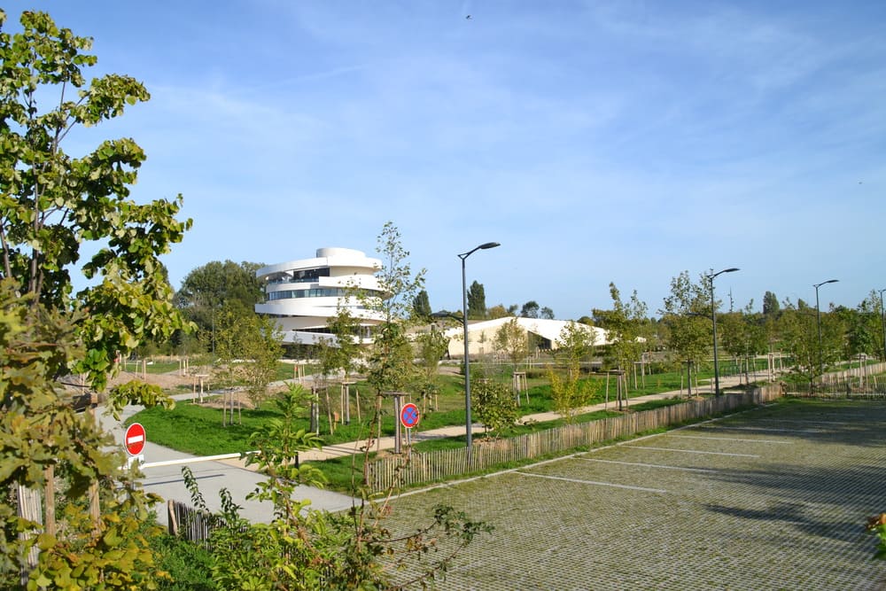 La Cité des Vins, projet urbain phare lié au classement à l’UNESCO des Climats de Bourgogne, s’articule autour d’une ambition environnementale forte, avec un quartier bas carbone, accessible uniquement par des transports écologiques. Les constructions sont implantées dans une oasis de verdure, au sein d’un vaste parc arboré. Les différentes constructions emploient un vocabulaire architectural autour de la végétation, du bois et du verre, marquant une ambiance naturelle et paysagée forte.