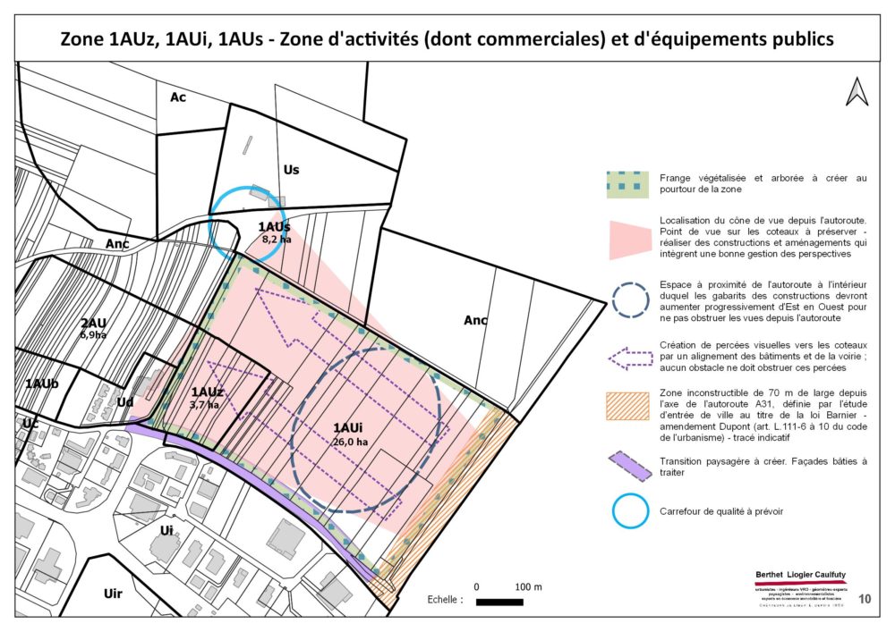 La procédure a fait l’objet d’une évaluation environnementale systématique et intégrait une étude d’entrée de ville au titre de la loi Barnier (amendement Dupont) et, plus largement, de forts enjeux paysagers, en lien avec les Climats de Bourgogne inscrits à l’UNESCO, au moyen d’une étude d’impact patrimonial.