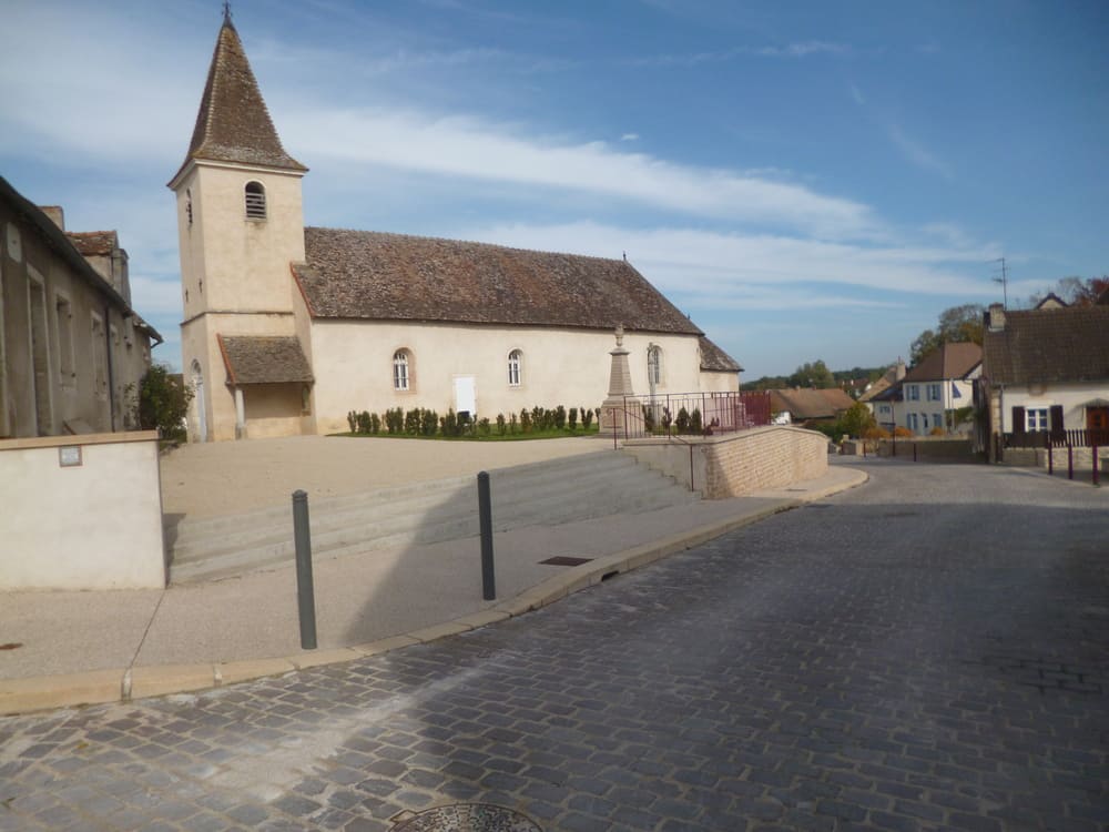 Le réaménagement des espaces publics vise la requalification du centre du village, entre l’Eglise et la Mairie, et notamment la rue principale. Le travail sur les matériaux met en valeur le patrimoine, avec des pavages et mur de soutènement en pierre.